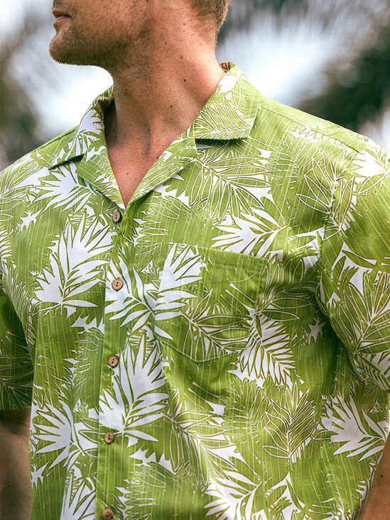 Mens Hawaiian Aloha Leaf Loose Short Sleeve Shirt
