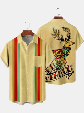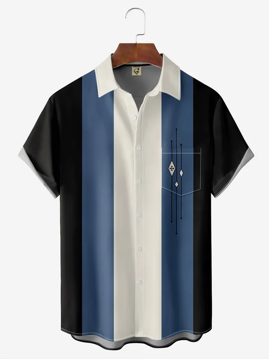 Stripe Chest Pocket Short Sleeve Casual Bowling Shirt