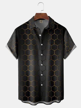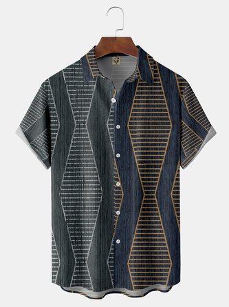 Mens Navigation Map Printed Casual Short Sleeve Shirt