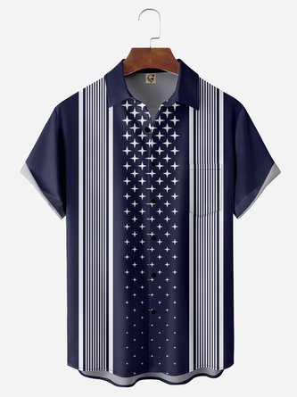 American Flag Striped Chest Pocket Short Sleeve Casual Shirt