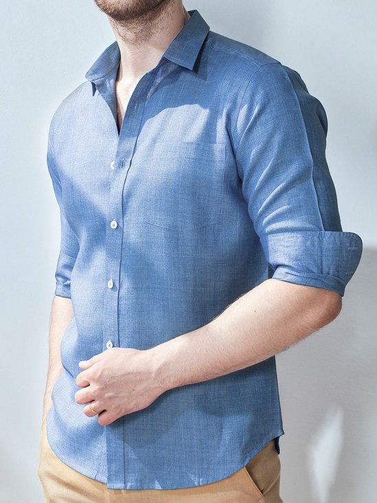 Cotton Linen Plain Color Casual Long Sleeve Shirt