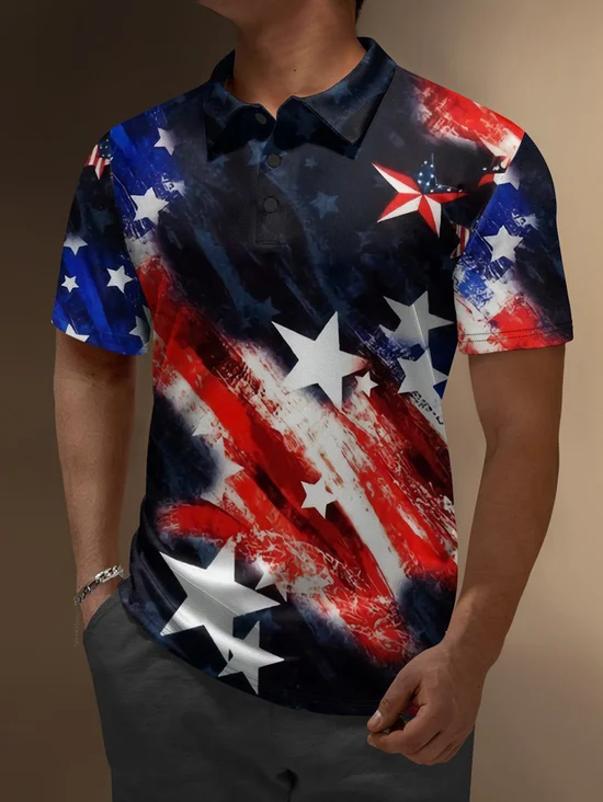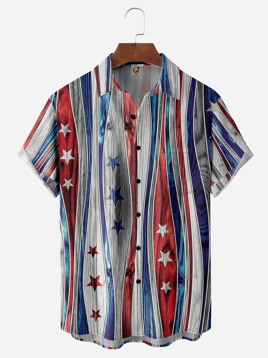Independence Day Flag Chest Pocket Short Sleeve Shirt