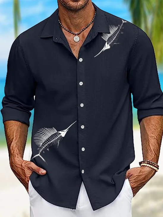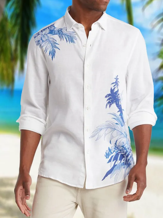 Cotton Coconut Tree Embroidered Long Sleeve Casual Shirt