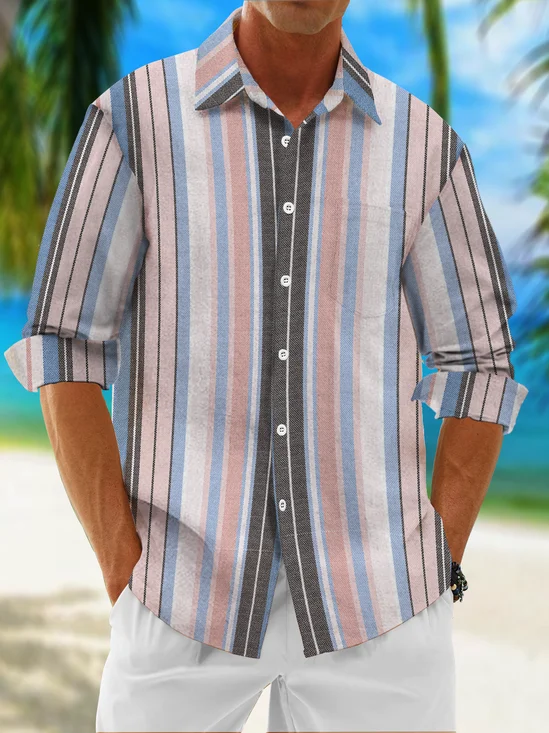 Striped Chest Pocket Long Sleeve Casual Shirt