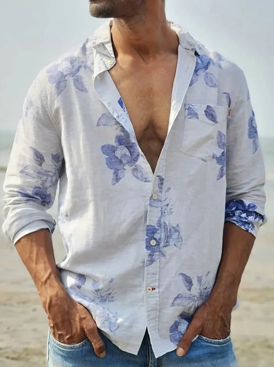 Floral Chest Pocket Long Sleeve Casual Shirt