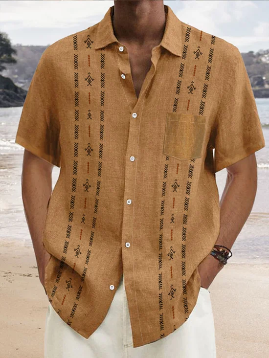 Cotton Chest Pocket Short Sleeve Guayabera Shirt