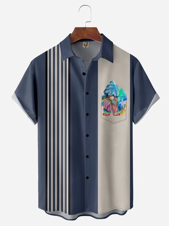 Big Size Crucifix Chest Pocket Short Sleeve Bowling Shirt