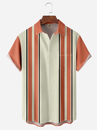 Striped Print Chest Pocket Short Sleeve Shirt