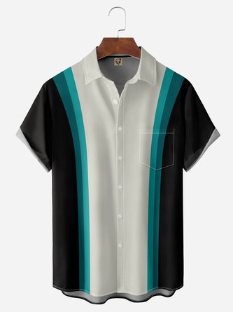 Big Size Textured Chest Pocket Short Sleeve Bowling Shirt