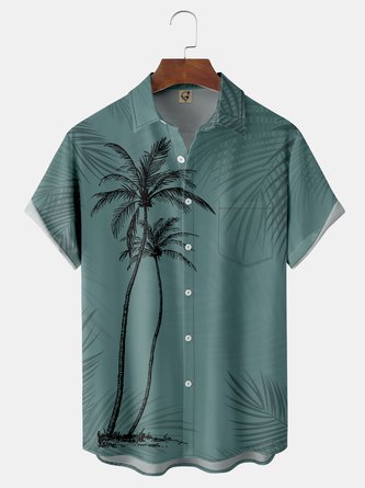 Big size Coconut Tree Chest Pocket Short Sleeve Hawaiian Shirt
