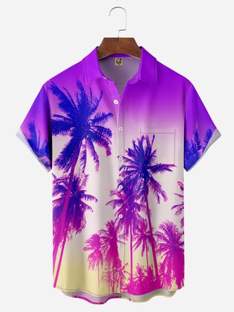 Coconut Tree Chest Pocket Short Sleeve Hawaiian Shirt