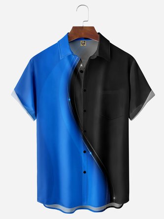 Stripe Chest Pocket Short Sleeve Casual Bowling Shirt