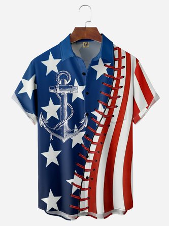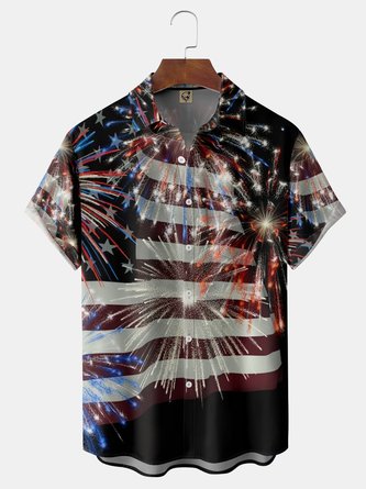 Independence Day Flag Chest Pocket Short Sleeve Shirt