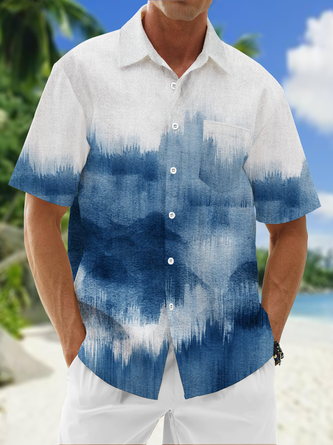 Cotton Linen Geometric Print Casual Short Sleeve Shirt