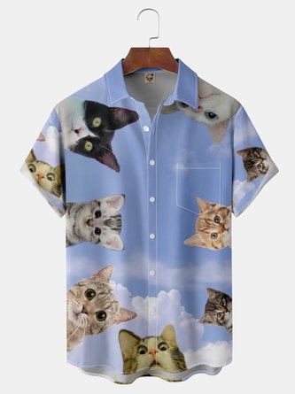 Big Size Easter Chest Pocket Short Sleeve Casual Shirt