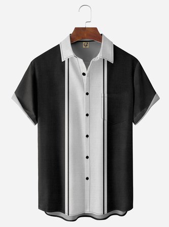 Paneled Color Contrast Breast Pocket Short Sleeve Resort Shirt