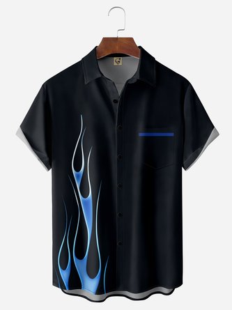 Big Size Textured Chest Pocket Short Sleeve Bowling Shirt
