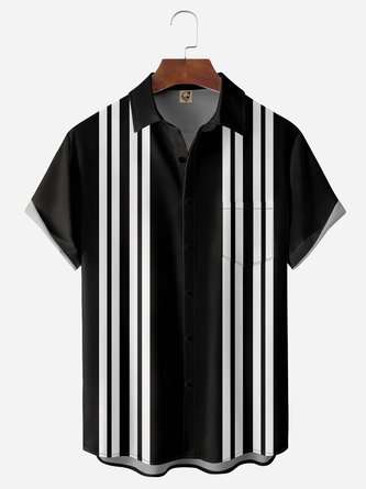 Striped Chest Pocket Short Sleeve Casual Shirt