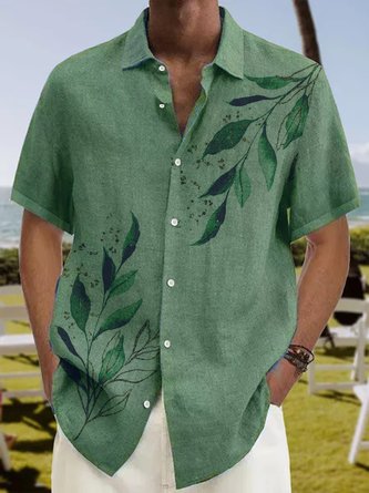 Leaves Chest Pocket Short-Sleeve Hawaiian Shirt