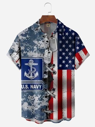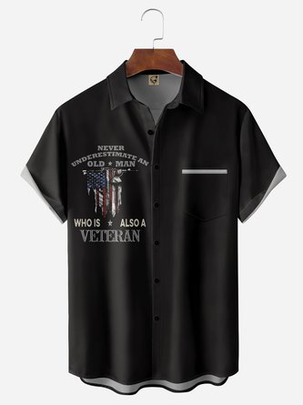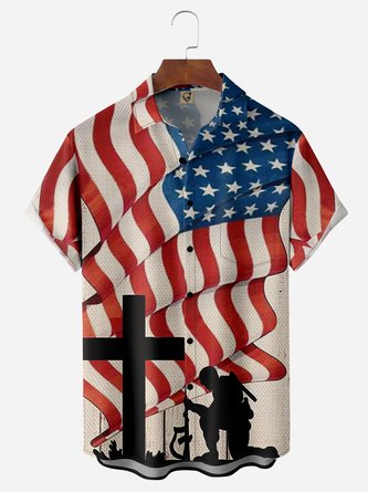 Independence Day Flag Chest Pocket Short Sleeve Shirt