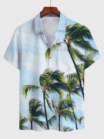 Coconut Tree Chest Pocket Long Sleeve Casual Shirt