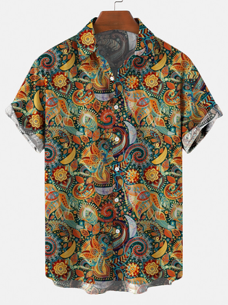Cotton Plain Plant Flower Chest Pocket Short Sleeve Casual Shirt