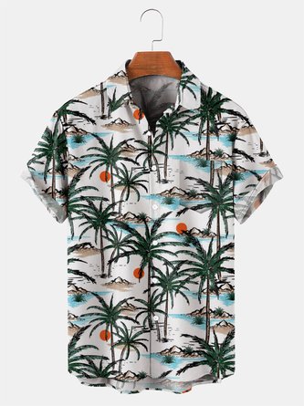 Cotton Coconut Tree Print Long Sleeve Casual Shirt