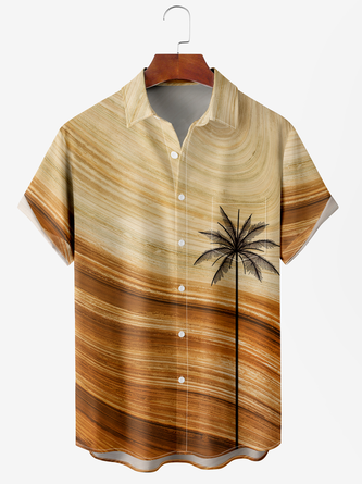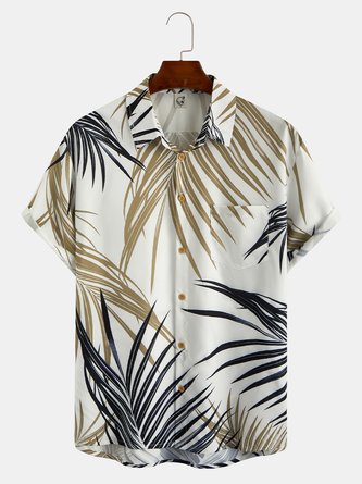 Mens Hawaiian Aloha Leaf Loose Short Sleeve Shirt