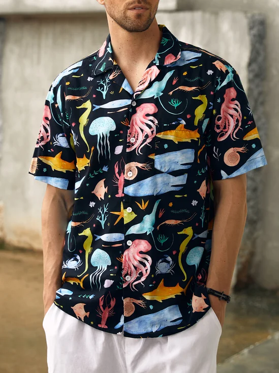 Hardaddy® Cotton Marine Life Aloha Shirt