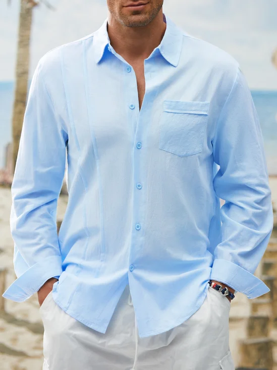 Cotton Linen Plain Color Casual Long Sleeve Shirt