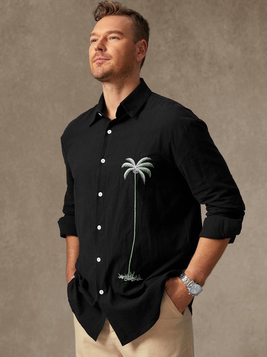 Cotton Coconut Tree Embroidered Long Sleeve Casual Shirt