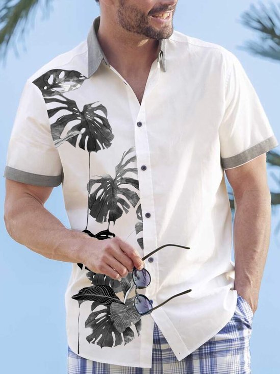 Leaves Chest Pocket Long Sleeve Casual Shirt
