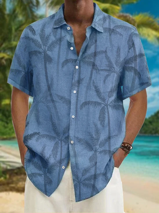 Coconut Tree Chest Pocket Short Sleeve Hawaiian Shirt