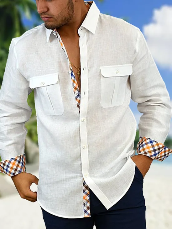 Cotton Plaid Contrast Long Sleeve Casual Shirt