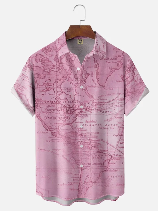 Mens Navigation Map Printed Casual Short Sleeve Shirt