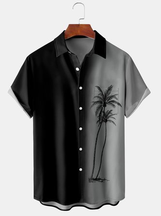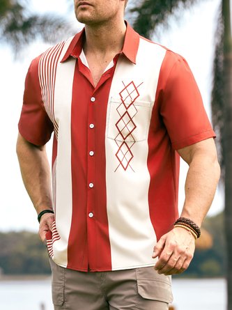 Mens Retro Geo Print Lapel Loose Short Sleeve Bowling Shirt