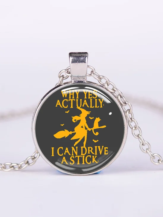 Time Stone Crystal Halloween Alphabet Witch Pattern Necklace