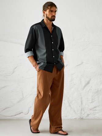 Cotton Contrast Color Long Sleeve Casual Shirt