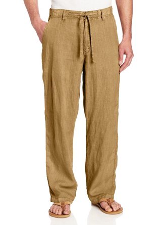 Cotton and Linen Plain Hawaiian Casual Trousers