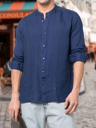 Cotton Linen Plain Color Casual Long Sleeve Shirt
