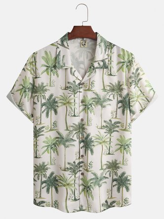 Big size Coconut Tree Chest Pocket Short Sleeve Hawaiian Shirt