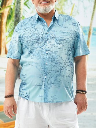Mens Navigation Map Printed Casual Short Sleeve Shirt