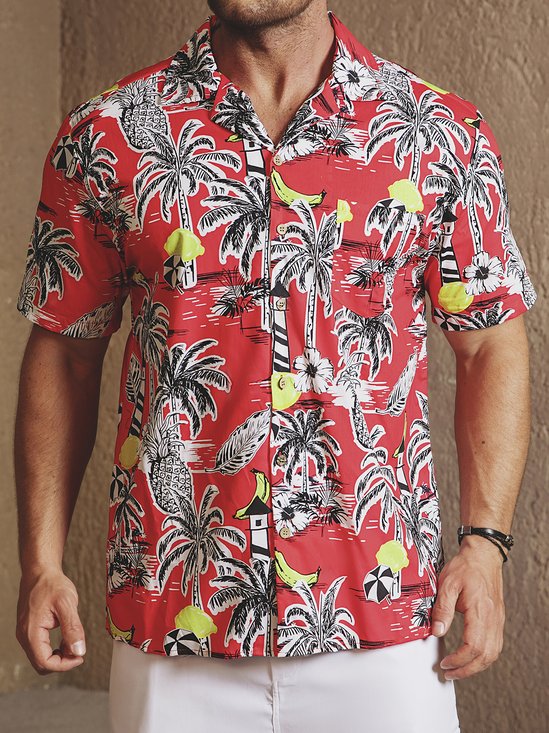 Cotton Coconut Tree Print Long Sleeve Casual Shirt