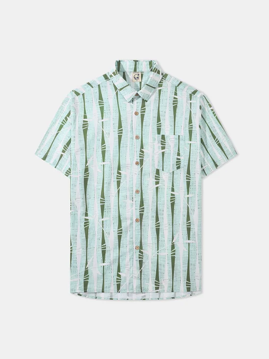 Cotton Plain Plant Flower Chest Pocket Short Sleeve Casual Shirt