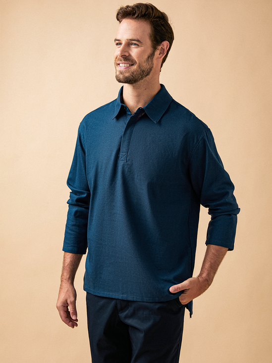 Cotton-flax style n casual long-sleeved linen shirt in clean color base