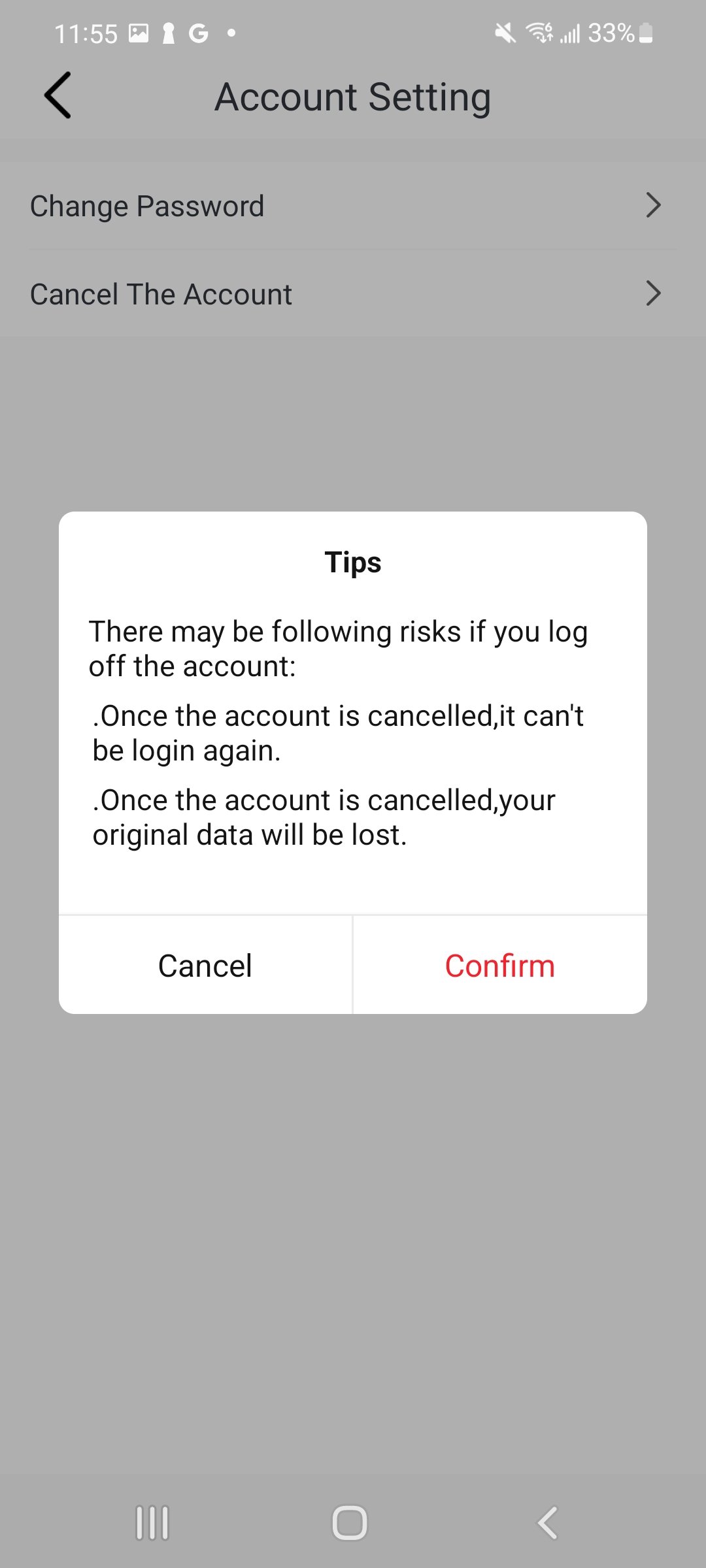 Step 2:Select "Account Setting" > Cancel the account > Confirm