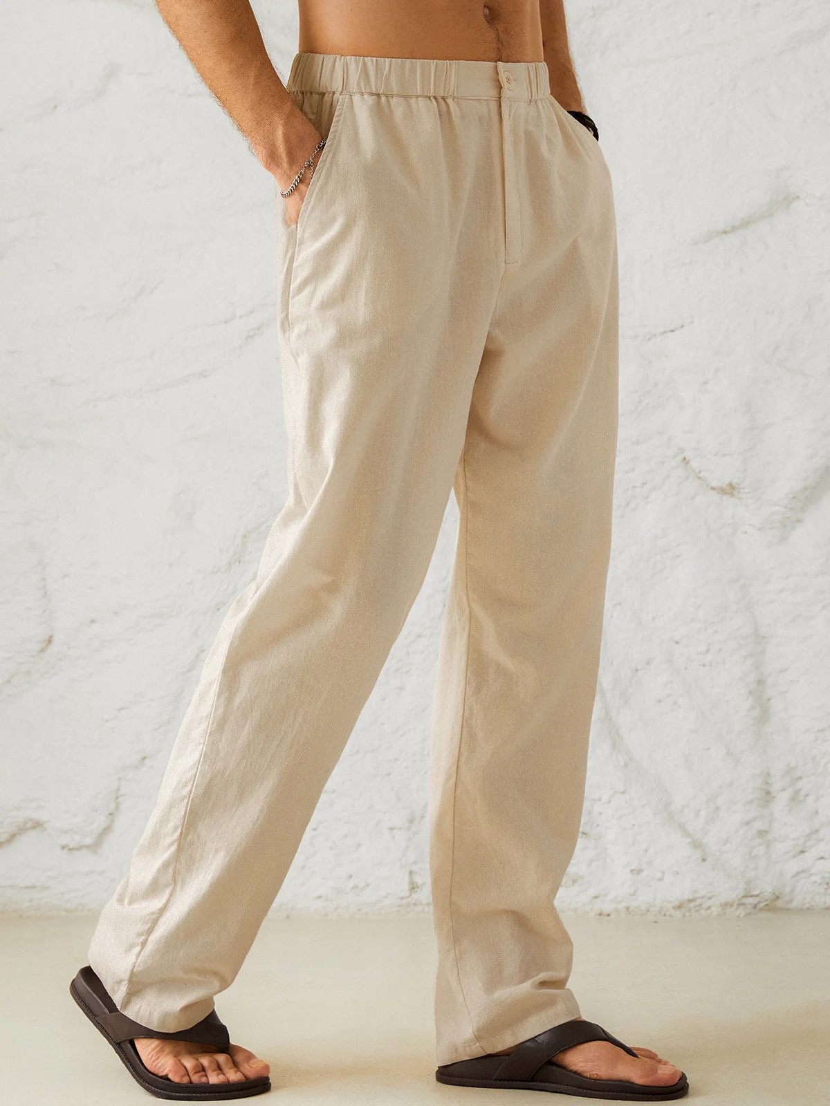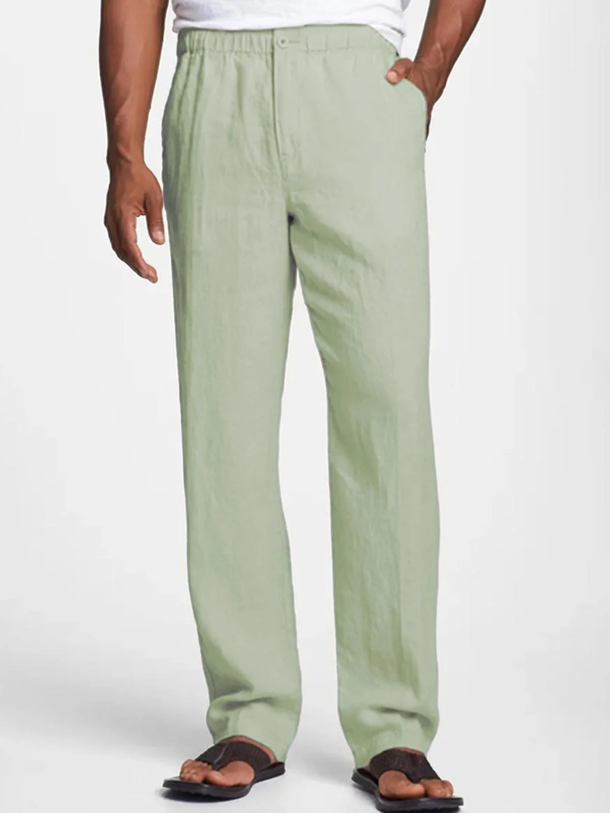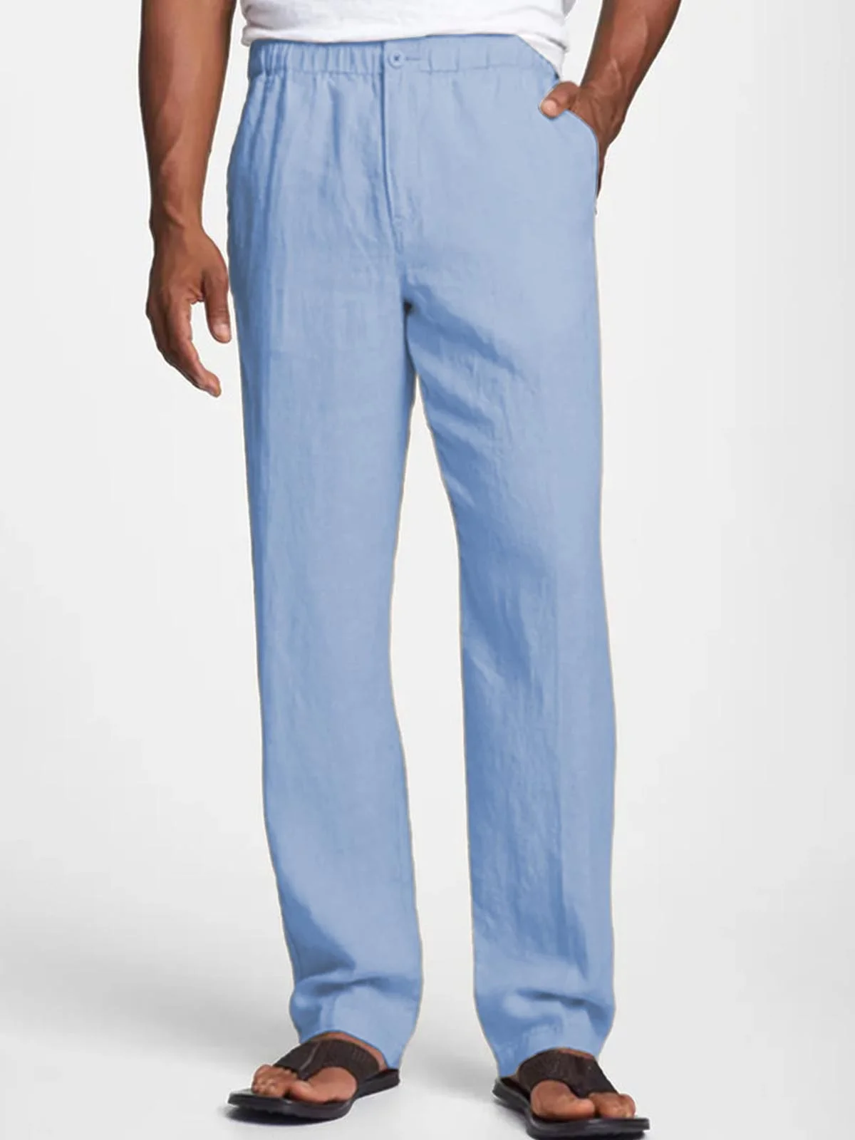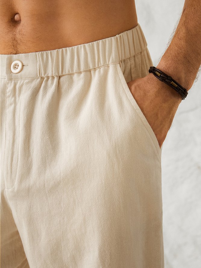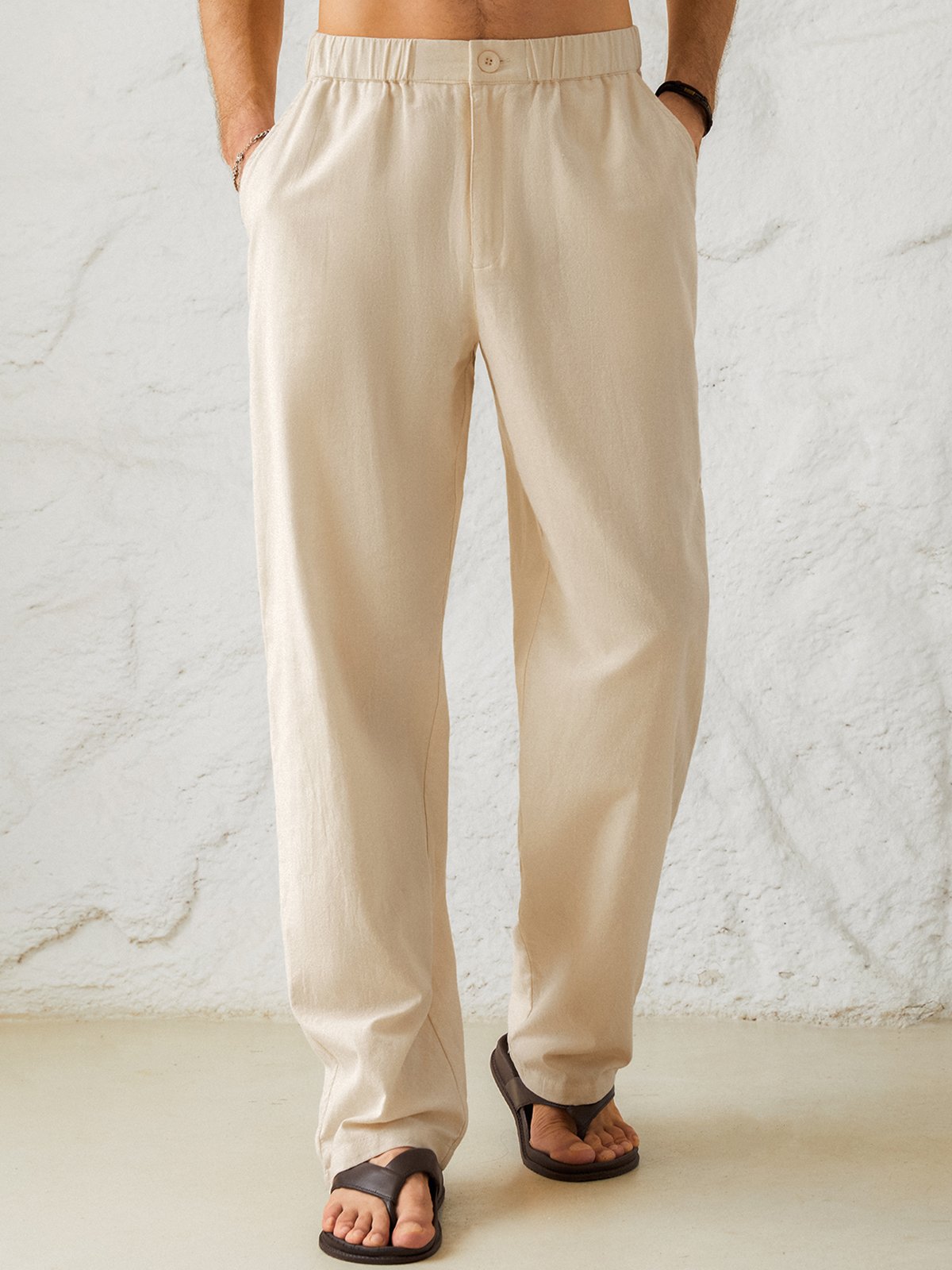 Cotton and Linen Plain Hawaiian Casual Trousers