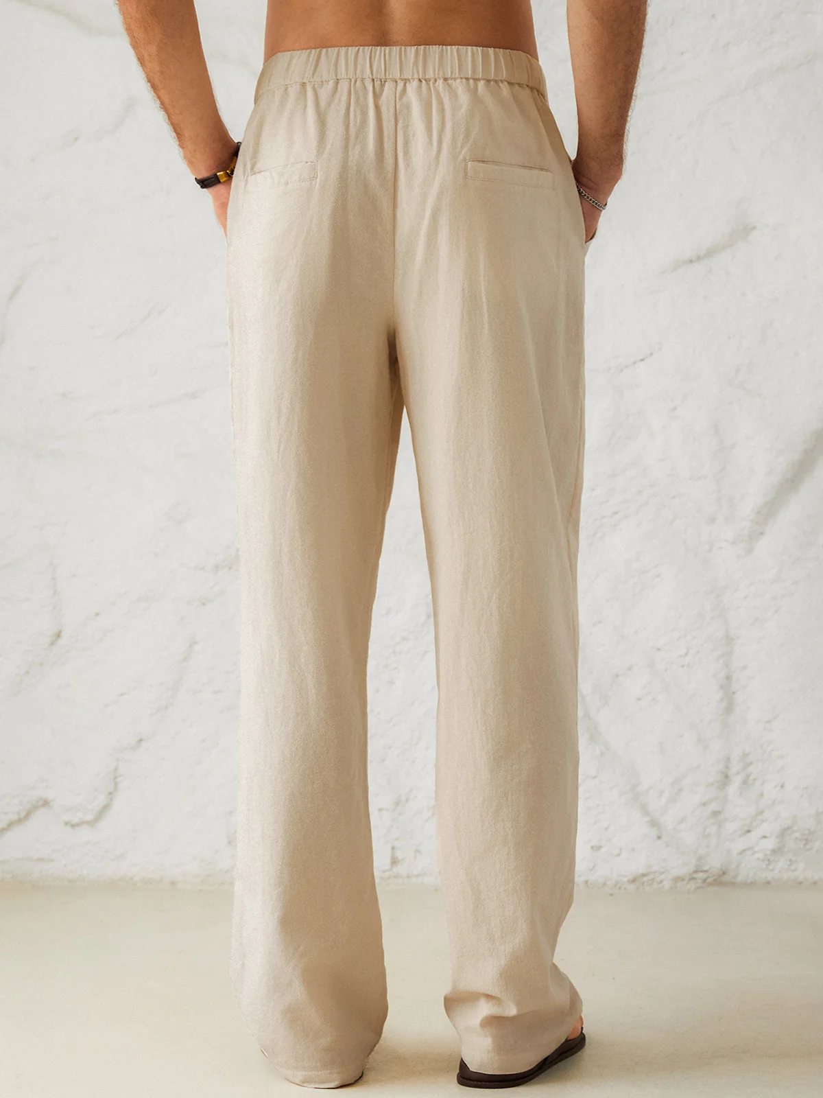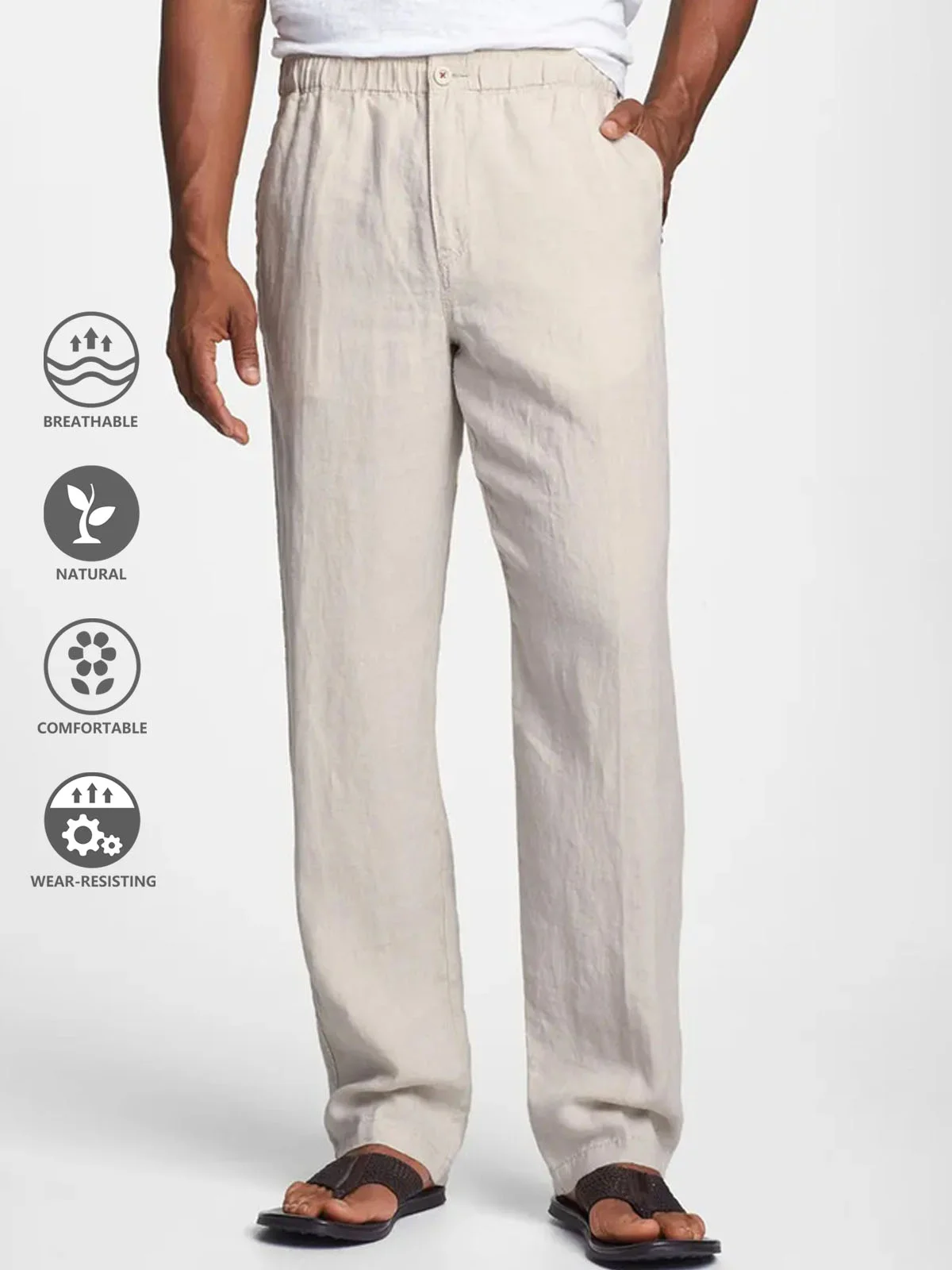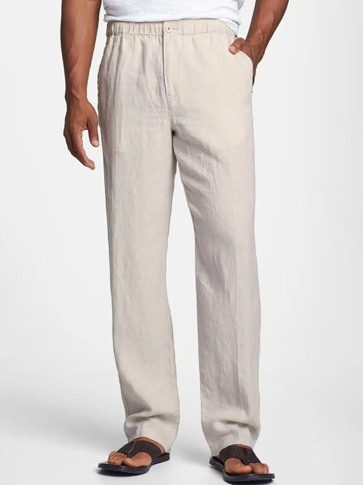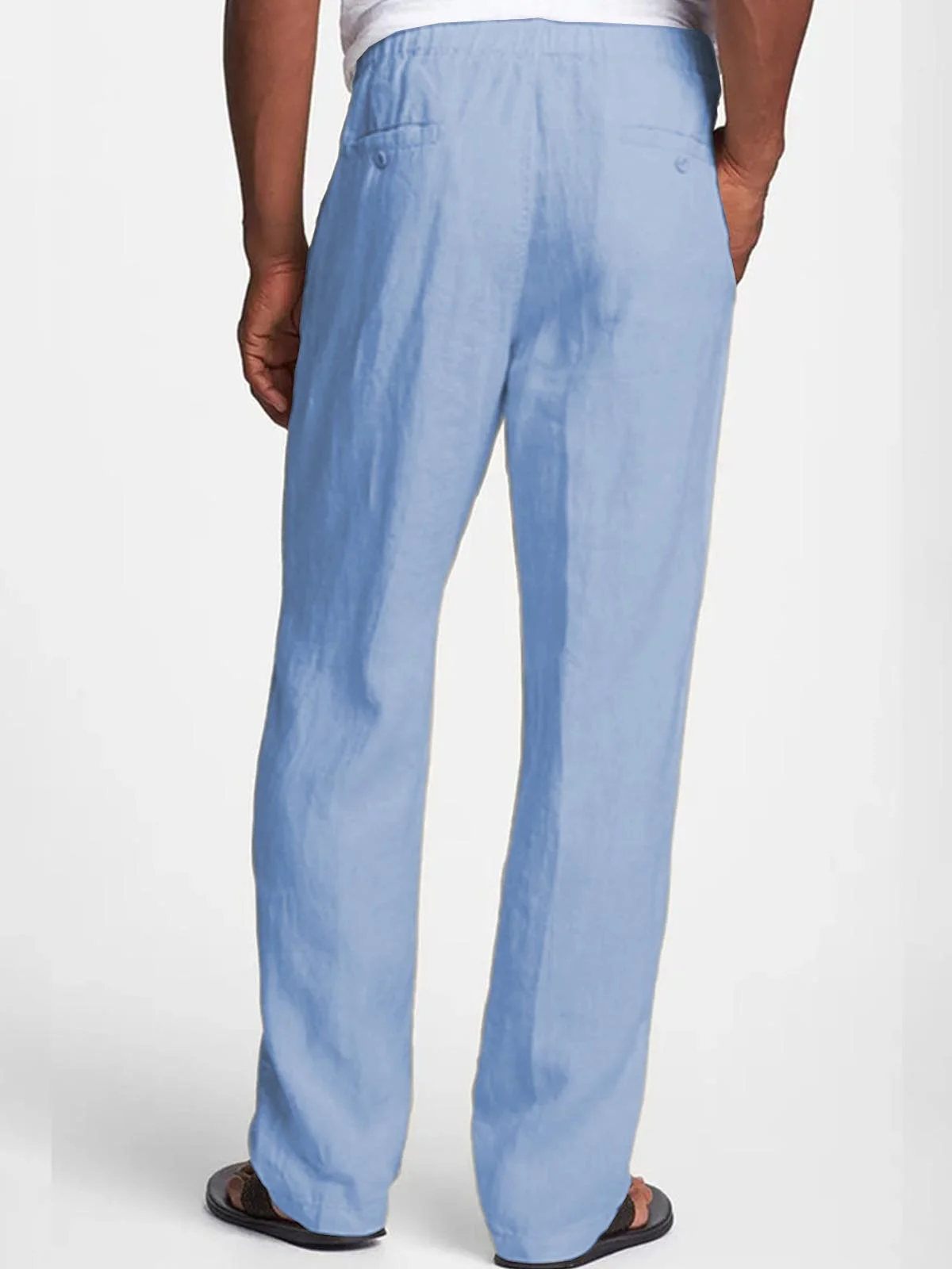 Cotton and Linen Plain Hawaiian Casual Trousers