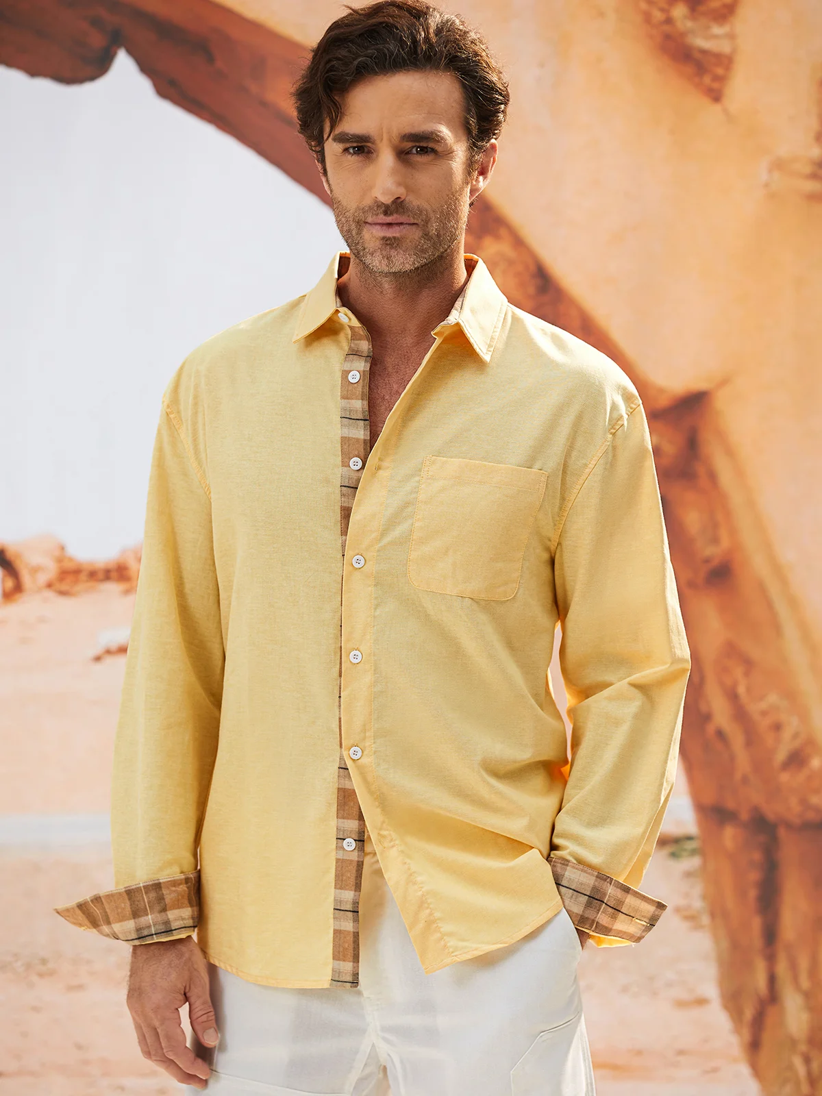 Cotton Plaid Contrast Long Sleeve Casual Shirt