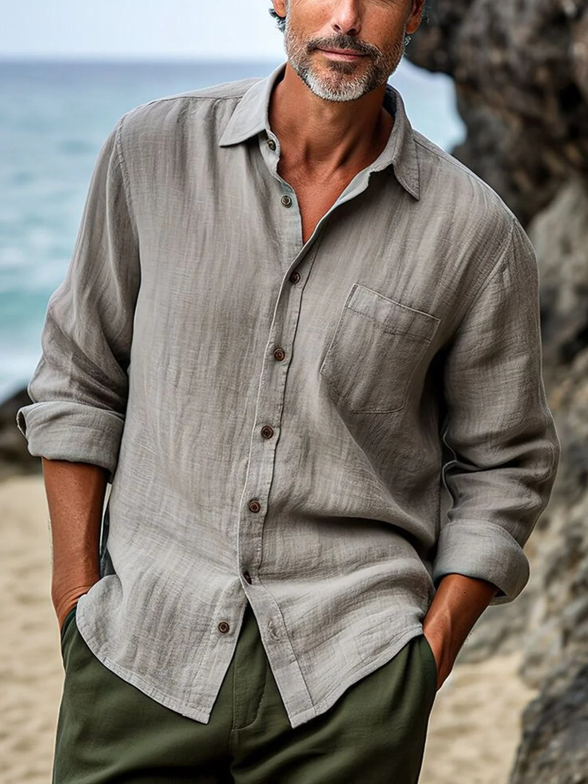 Cotton Plain Long Sleeve Hawaiian Shirt